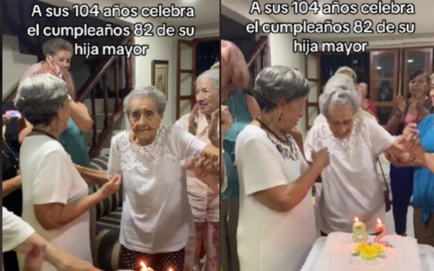 Sorpresa y conmoción generó en redes sociales un video que muestra a una madre de 104 años celebrando los 82 años de su hija.