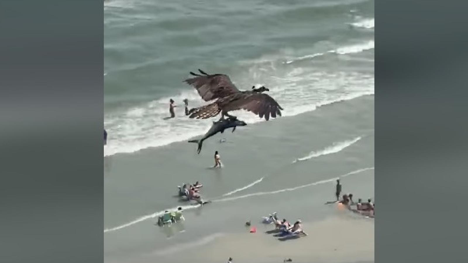 Difunden el momento en que águila lleva un tiburón bebé por los aires