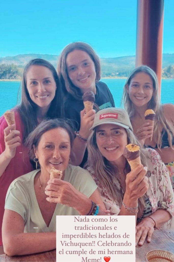 "Nada como los tradicionales e imperdibles helados de Vichuquen!! Celebrando el cumple de mi hermana Meme", comentó Angélica Castro en las historias de Instagram.