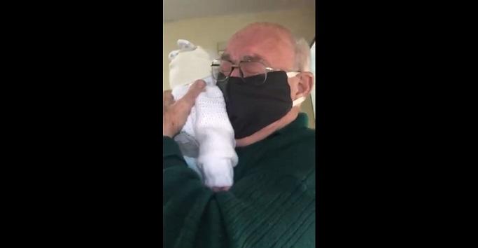Emotivo encuentro de anciano con su bisnieto de 2 meses se convierte en viral