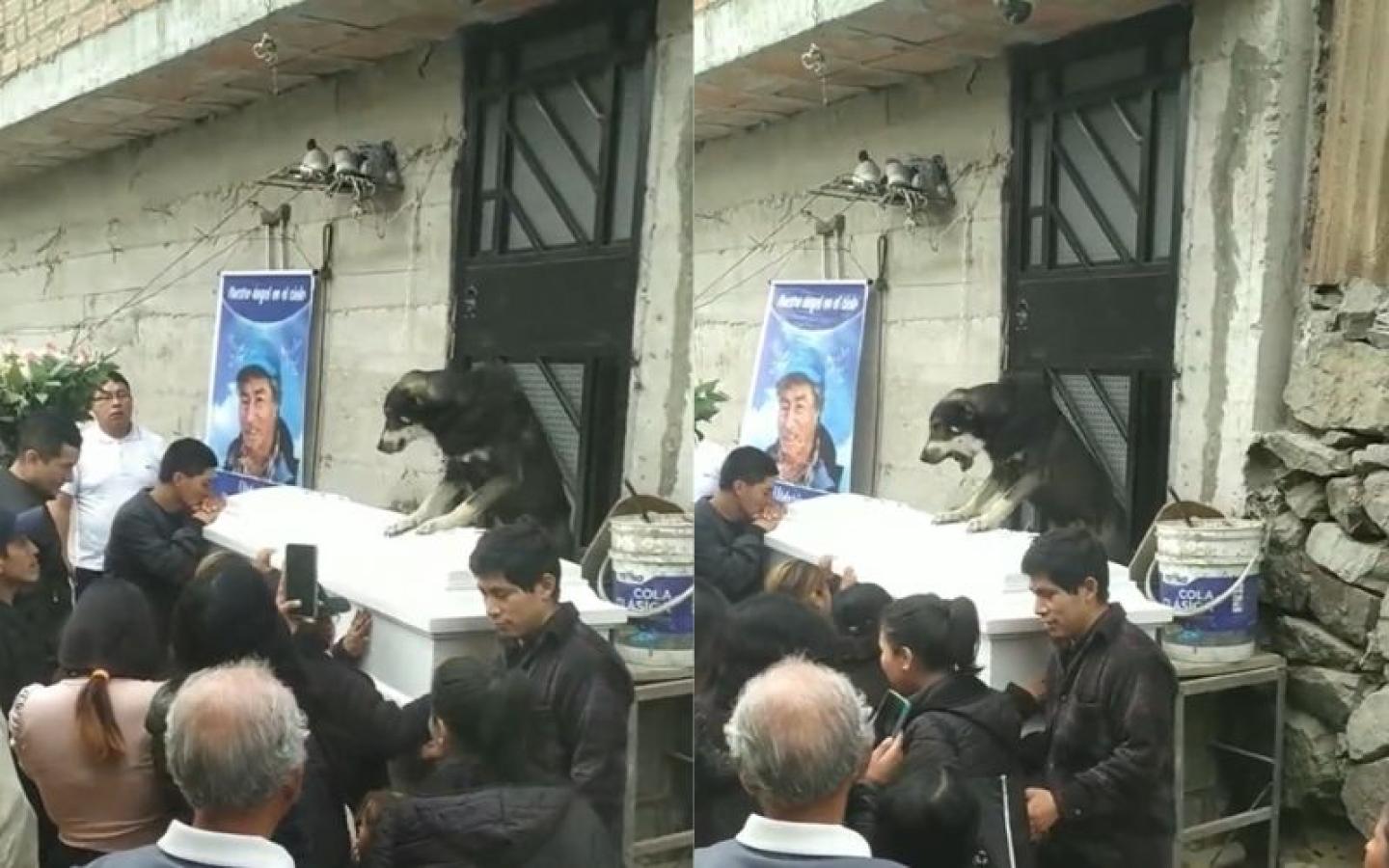 Concretamente, el can se paró justo a un lado del féretro donde se encontraba su dueño.