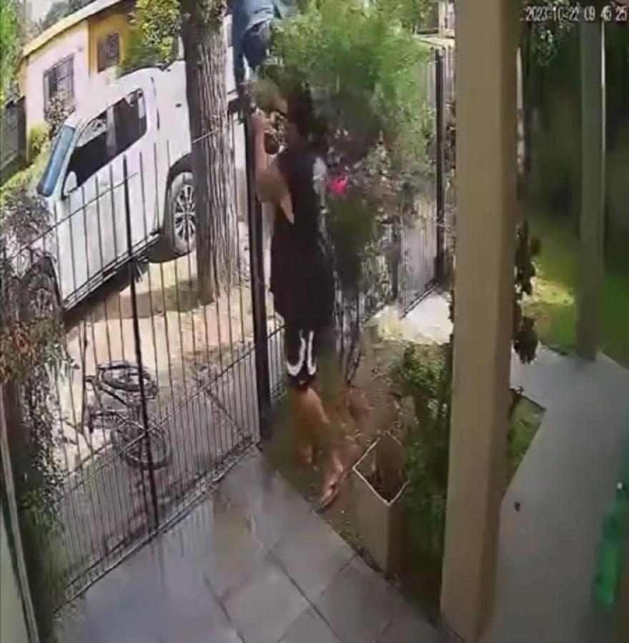 El ladrón robó una bicicleta del hogar y procedió a lanzarla a la calle. Cuando intentó escapar de la casa, trepó por la reja, siendo atrapado por el dueño de casa, quien lo comenzó a golpear brutalmente.