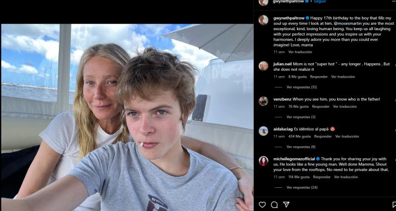 En un post del 8 de abril de este años, Paltrow saludó a su hijo por su cumpleaños y los comentarios sobre su parecido con el cantante de Coldplay no faltaron: