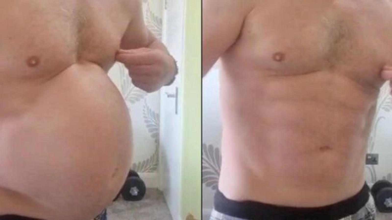 Justamente, Simon Henderson sorprende demostrando que puede transformar sus marcados abdominales en una enorme barriga.