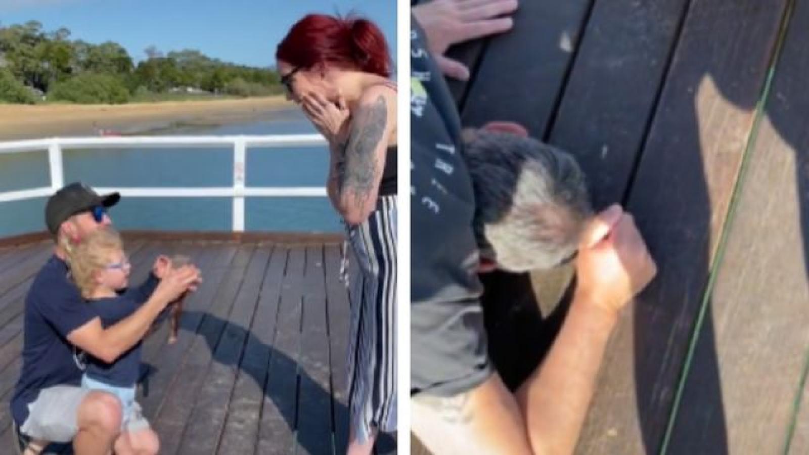 Un particular video del momento quedó registrado en una cuenta de TikTok, donde se logra ver a un hombre junto a su novia en un muelle. Él quería darle una especial sorpresa y decidió incluir a su pequeña hija en aquel día tan especial, sin imaginar lo que sucedería.