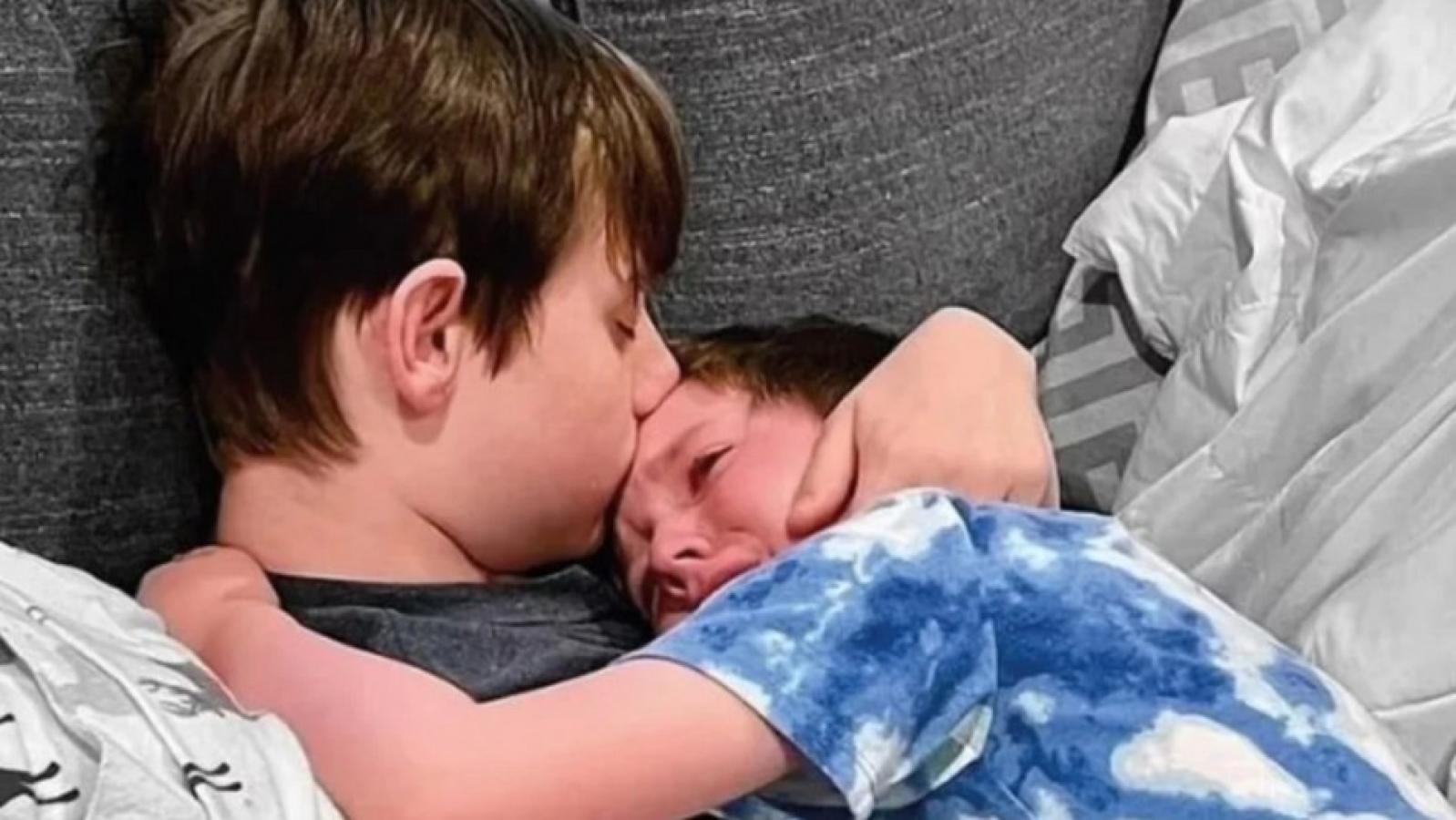 En la emotiva fotografía difundida en redes sociales, se aprecia a Peter de 11 años llorando desconsoladamente abrazado a Ian. El adolescente abraza a su hermano pequeño en su pecho y, con los ojos cerrados, aparece dándole un tierno beso en la frente.