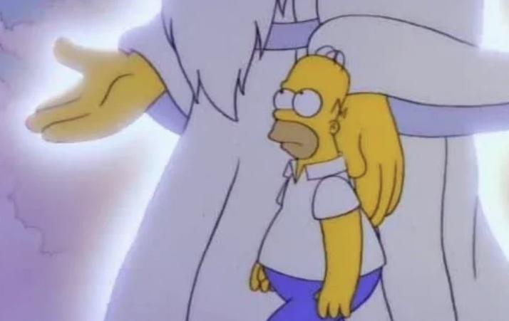 En ese plano, Simpson le pregunta por el sentido de la vida y la deidad le anuncia que lo sabrá "en seis meses, cuando muera".