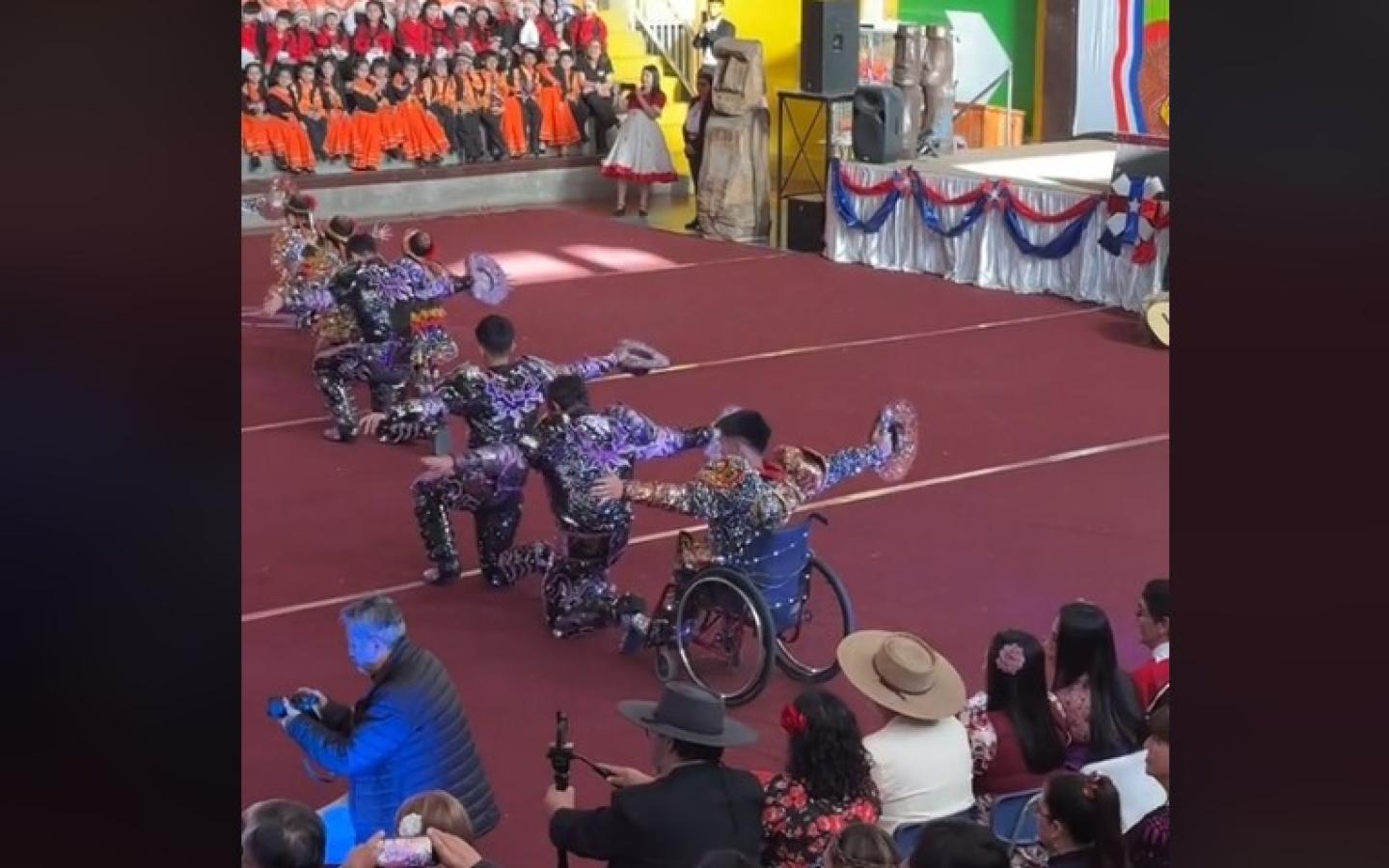 A través de un video que subió su hermana (@yopolamiru) se puede ver al joven usando su silla de ruedas, siendo uno más del grupo de baile mientras usa el traje típico del baile nortino.