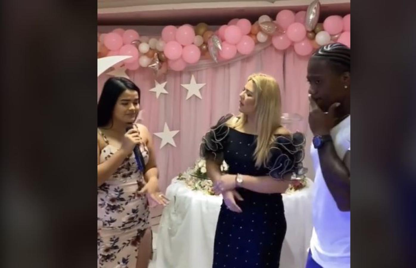 La pareja de la mamá llegó hasta donde estaba sucediendo todo el espectáculo y dijo: "Todo los mensajes que está mostrando ella dejan claro. Sean felices ambos. La bendición. No tengo nada que hablar. Ya me di cuenta de la mujer que eres".