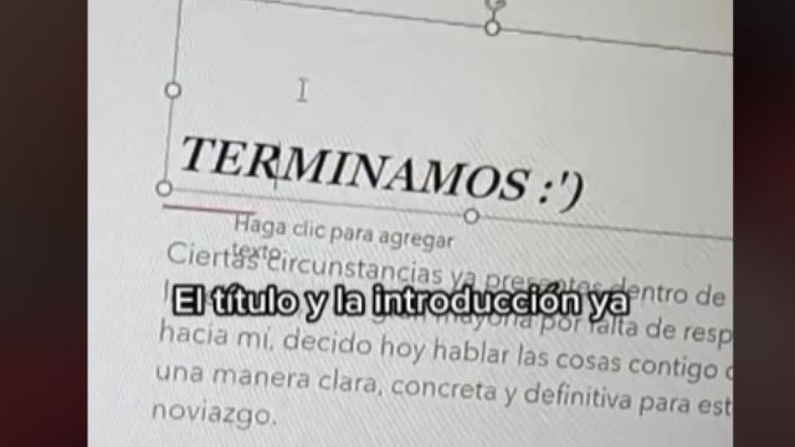 "Acompáñenme a hacerle una presentación en Power Point a mi novio con todas las pruebas de su infidelidad", fue lo que escribió al inicio del video que publicó en su cuenta de TikTok.