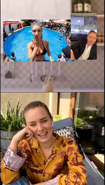 La conversación empezó cuando Cárcamo le preguntó respecto a su relación con el tema de la belleza. Si hacía alguna dieta, tenía una vida saludable o tenía rutinas de ejercicio para ir controlando la ansiedad de la cuarentena.