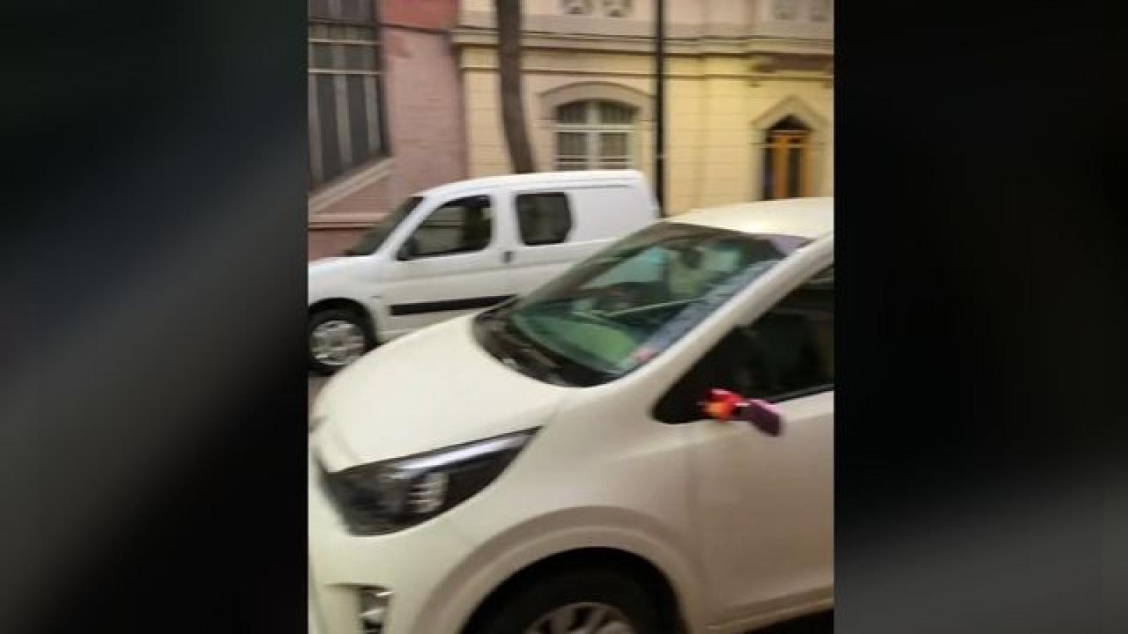 Con su celular en mano, puso énfasis en uno de los vehículos que se encontraba estacionado, enfocando un particular detalle.