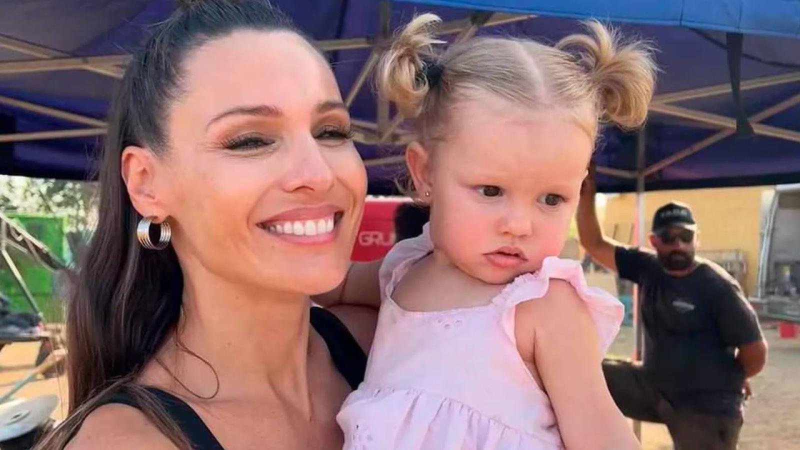 En la imagen se puede ver a la modelo junto a su hija de 2 años Ana, fruto de su relación con Roberto García Moritán, y su hermano Guillermo Ardohain frente a la tumba de la pequeña cubierta por flores.