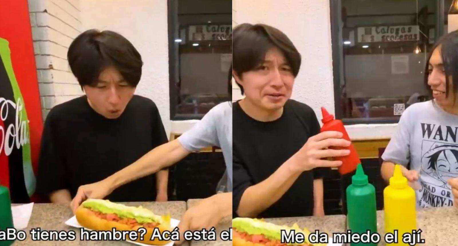 ¡Le picó todo! Japonés se hizo viral al probar un completo gigante con exceso de ají
