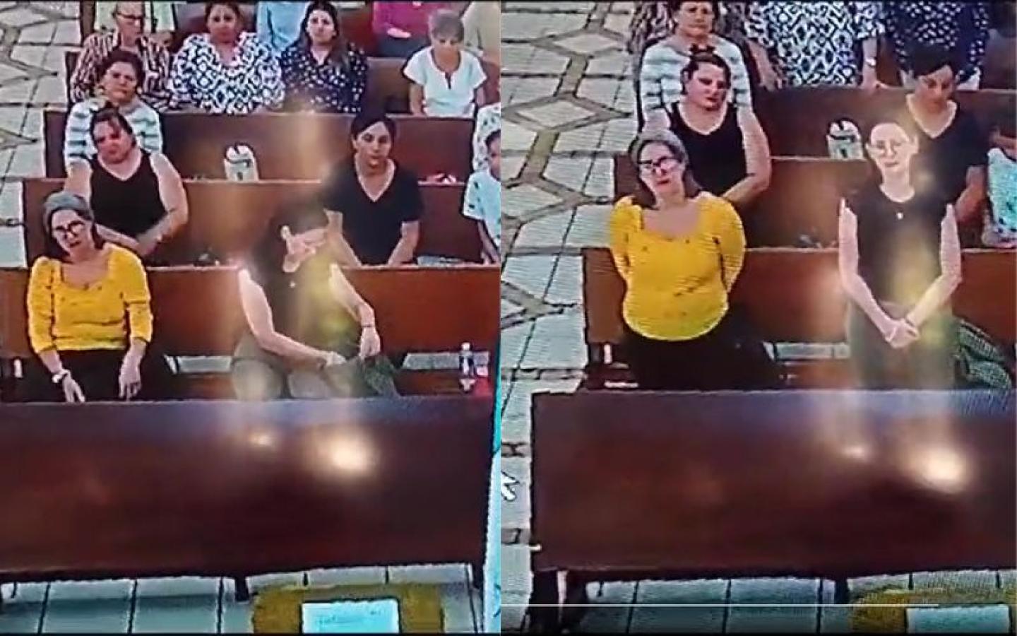 Viral se ha vuelto un video que muestra a una madre y su hija robando en una iglesia mientras se llevaba a cabo una misa.
