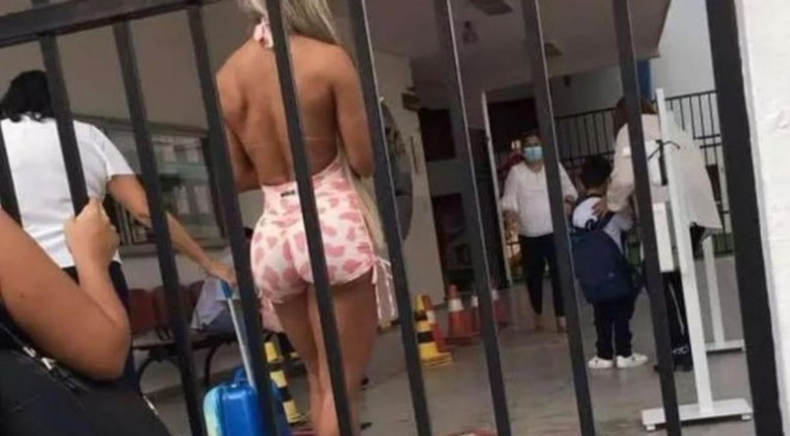 Mamá "fit" causa escándalo en Bolivia por su vestimenta en colegio