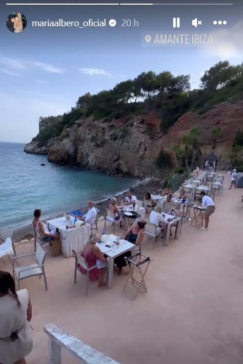 En otras fotos mostró un soñado momento, mostrando cómo la gente en Ibiza come en la playa, sobre la arena y al aire libre.