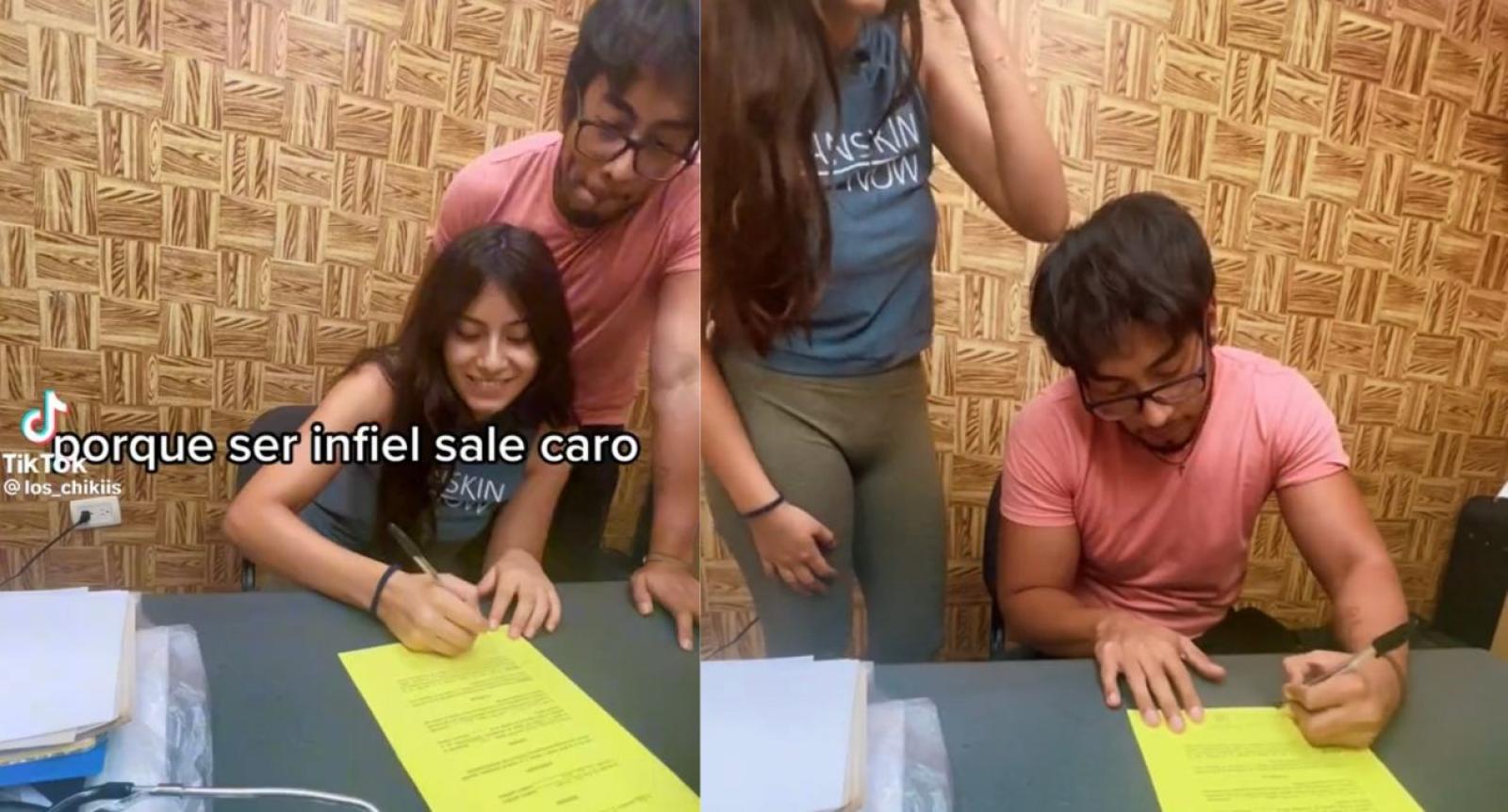 El hecho fue difundido en la plataforma de TikTok por la cuenta @los_chikiis, donde el novio explicó el motivo que los llevó a firmar este particular contrato.