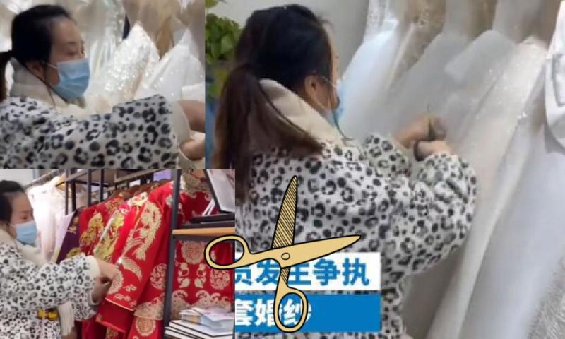This angry customer at a Chongqing bridal salon took out scissors and cut up wedding dress after wedding dress. The video has since gone viral on social media. pic.twitter.com/LSRXoI0OAa