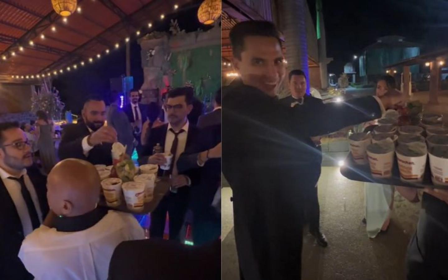 Los camareros se paseaban entre los presentes, portando bandejas repletas de esta comida instantánea, lo que capturó la atención tanto de los usuarios en TikTok como de los invitados en la boda.