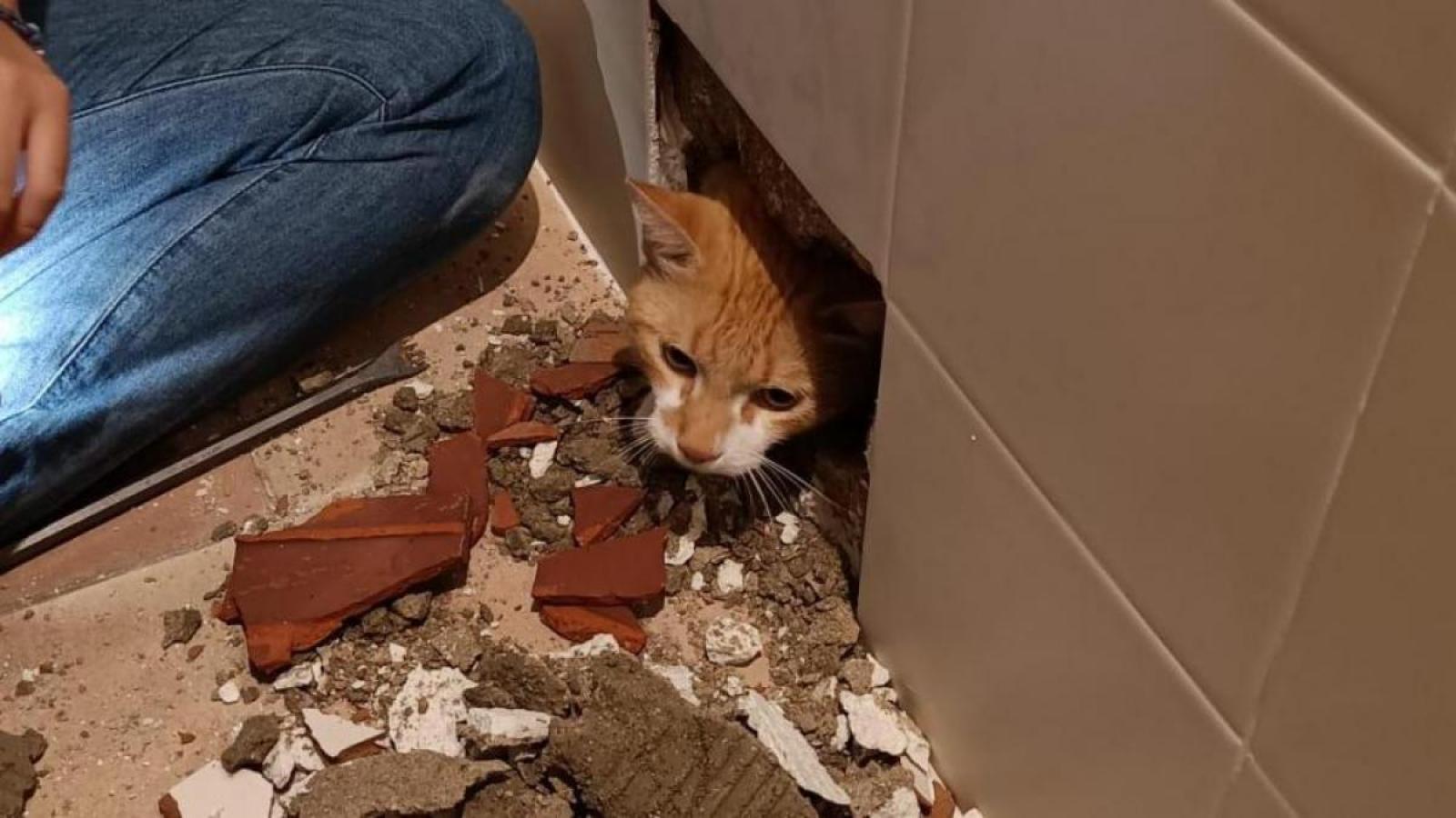 Obreros arreglaron un baño pero dejaron al gatito dentro de la pared