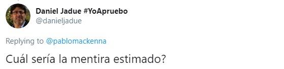 Una impensada polémica se vivió en Twitter. El ex conductor de televisión, Pablo Mackenna, trató de mentiroso al alcalde de Recoleta, Daniel Jadue, lo cual generó que la autoridad comunal lo enfrentará a través de la misma vía.