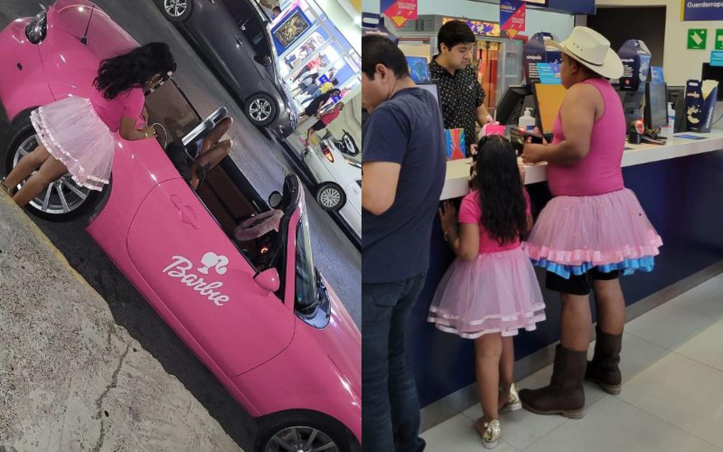 Un papá se ganó el corazón de varios en redes sociales tras vestirse de rosa para acompañar a su hija al estreno de Barbie.