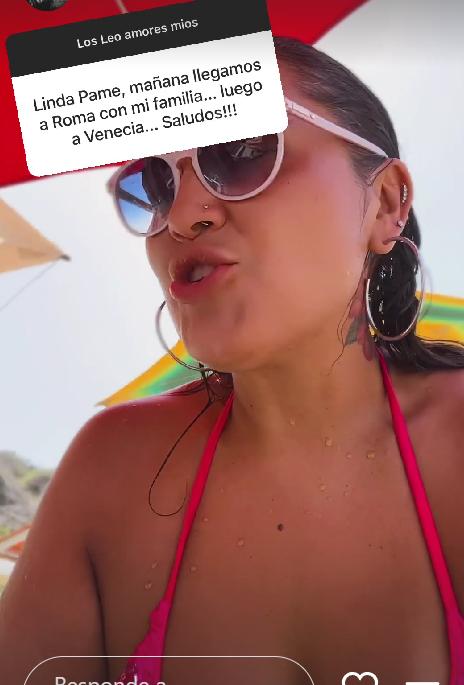 En sus últimas historias, se puede ver a la comediante disfrutando del sol y la playa de roma, con un coqueto bikini rosado.