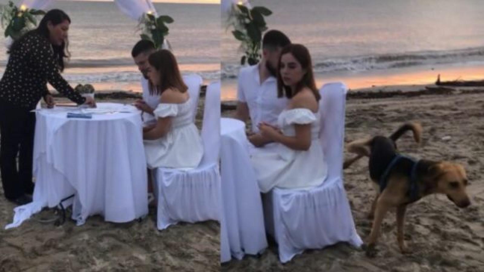 Pareja se casó el mismo día de la pedida de mano, pero un perrito les robó el protagonismo