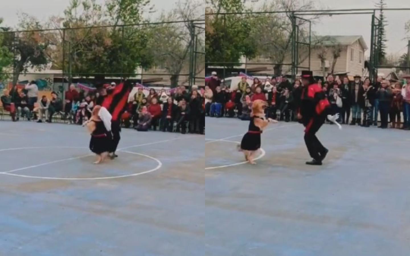 Perrita emociona al bailar cueca con su dueño