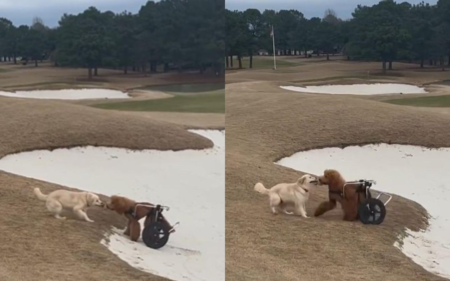 Todo quedó inmortalizado en un video que rápidamente se volvió viral, conmoviendo a los usuarios de redes sociales. Concretamente, en el clip se ve a dos perritos en lo que aparenta ser un campo de golf.