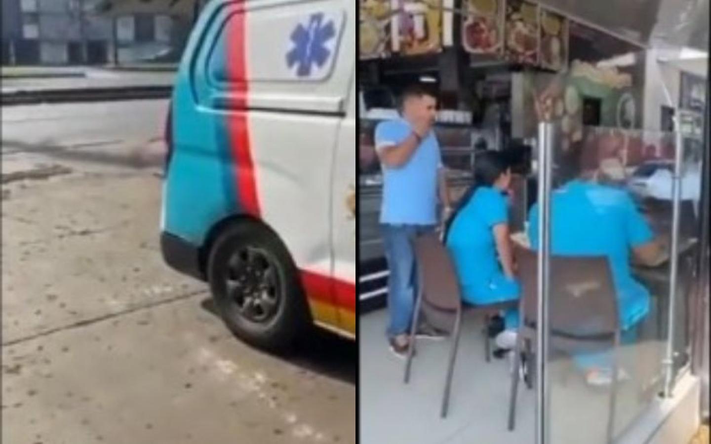 Precisamente, los auxiliares médicos pararon para tomar desayuno, por esto, el denunciante visiblemente indignado comentó: "No puedo creer que anden con una paciente en una ambulancia, mientras ellos se van a desayunar...teniendo al paciente. Es increíble".
