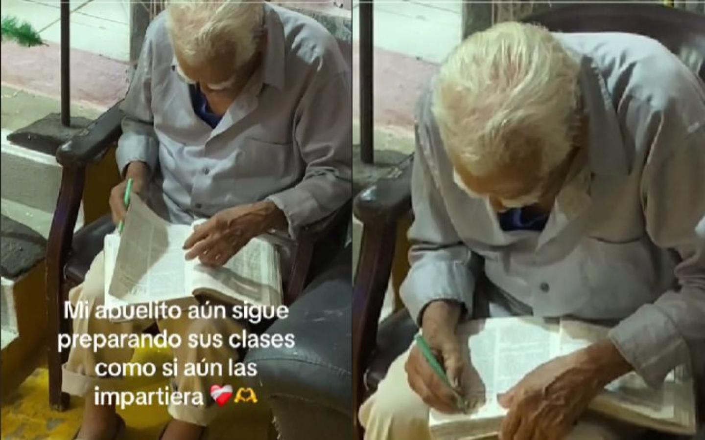 Se trata de un adulto mayor mexicano, quien pese a haberse retirado de sus labores como profesor, sigue preparando sus clases con la misma pasión y entrega como lo hacía durante su carrera activa.