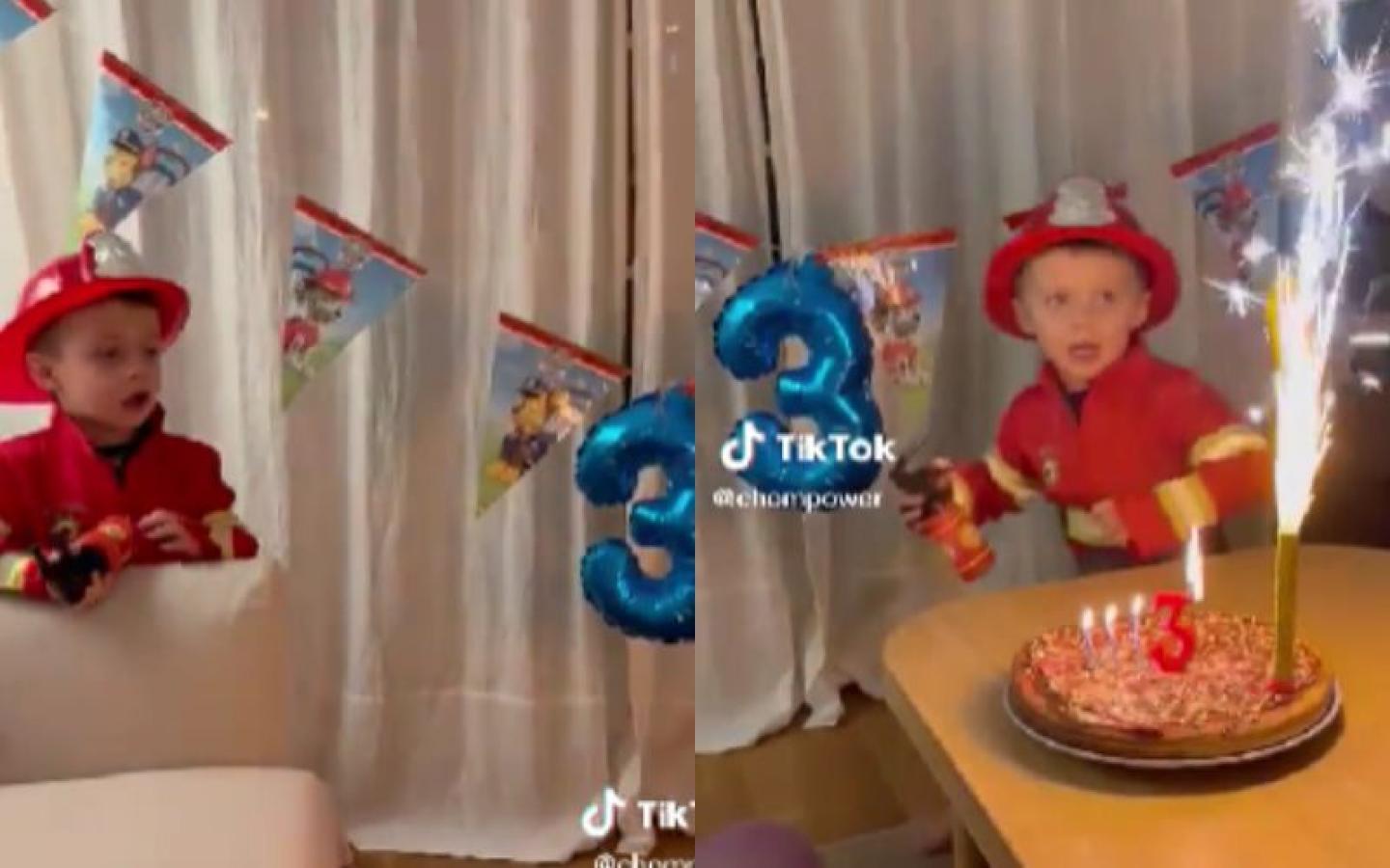 Todo quedó registrado en un video que fue compartido en TikTok. El menor estaba festejando sus tres años y quiso hacerlo disfrazado de bombero. Lo que llamó la atención de los usuarios, y sacó más de una carcajada, fue que el pequeño dejó muy en claro que le tiene miedo al fuego.