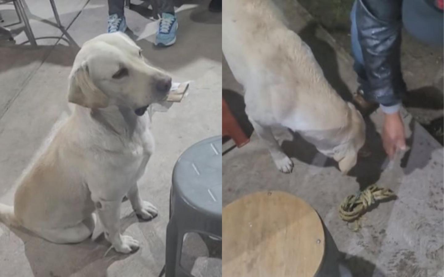 "Se sabe la de chambear”: Perrito enternece tras llegar a tienda de comida a cambiar objetos por comida