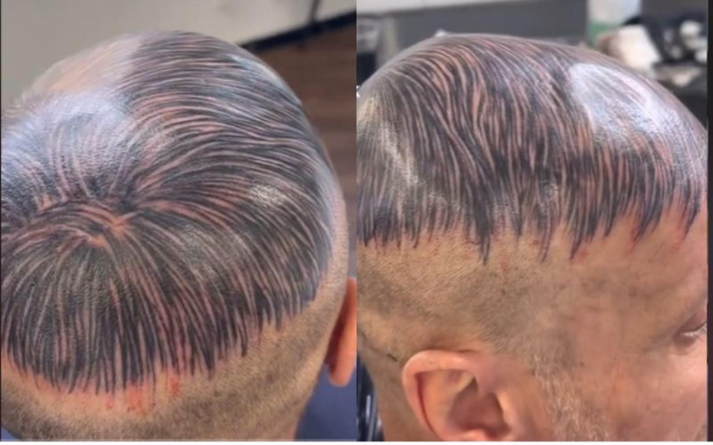 Junto al video, el usuario que compartió esta historia escribió: "Olvídese de un trasplante de cabello Hágase un tatuaje en el cabello".