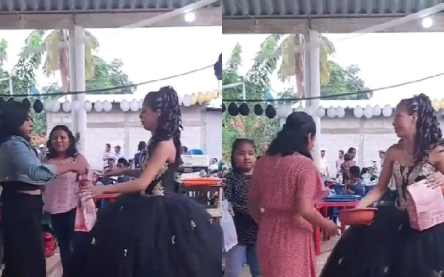 En el video que se ha viralizado en las redes se observa a la festejada deslumbrando con su vestido de quinceañera, parada frente a una fila de invitados, quienes fueron entregando sus regalos.