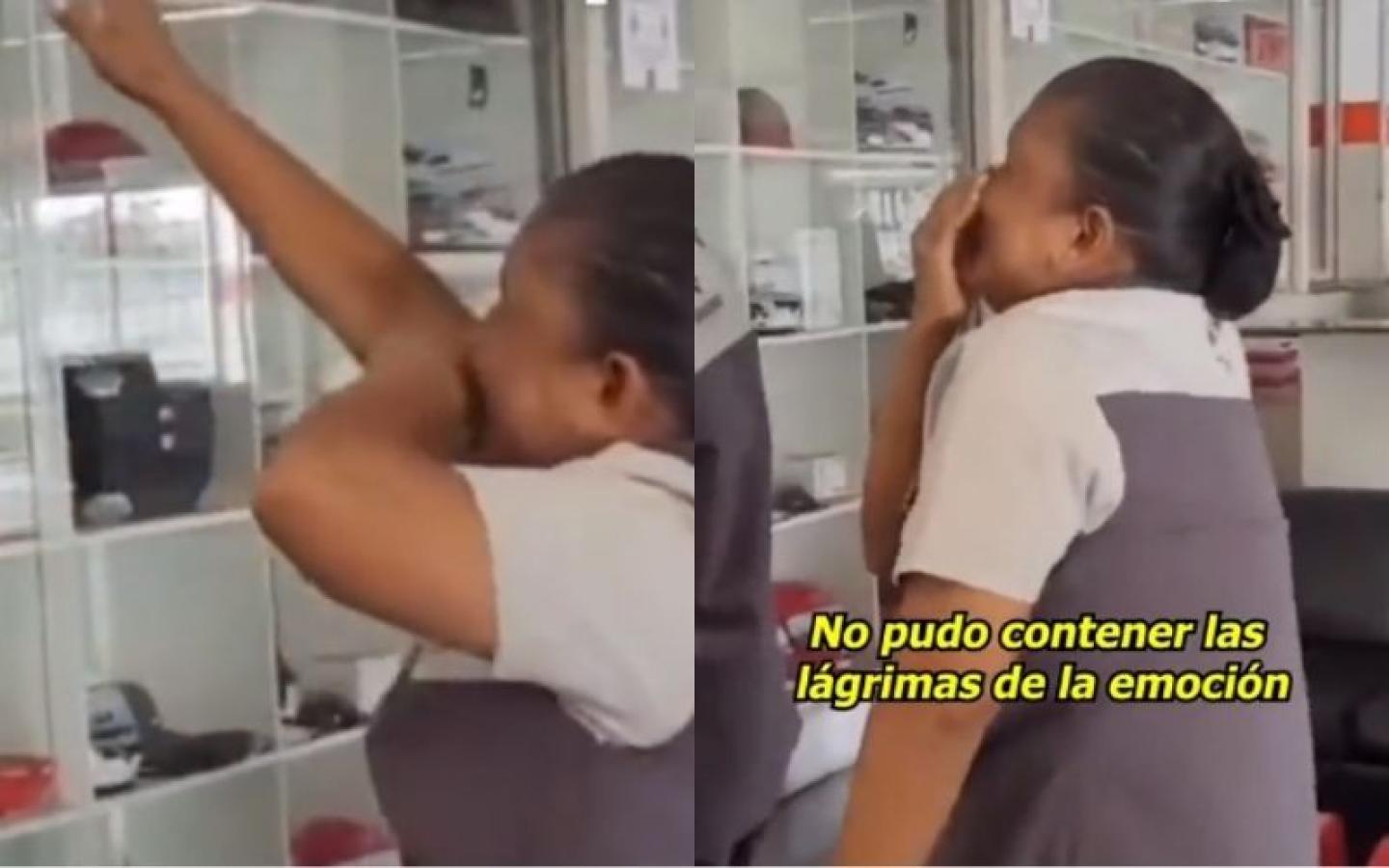 Feliz y orgullosa, la mujer no ocultó su emoción, ya que las lágrimas corrían por su rostro. Al mirar la pantalla, celebraba dando brincos y levantando sus manos.