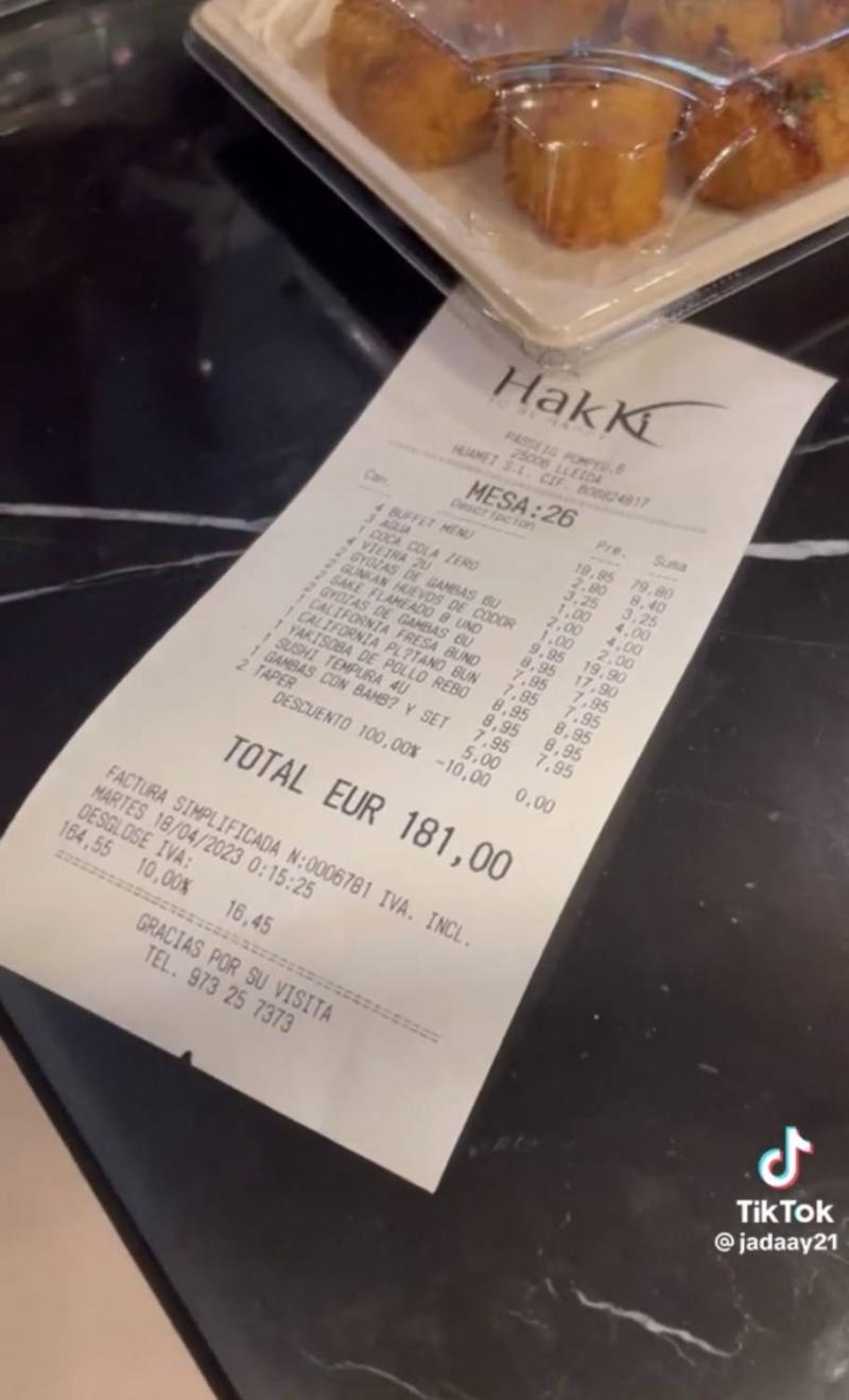 En el registro se ve como a modo de distender la situación intentan apuntarle al valor de la cuenta, hasta que finalmente llegó, por un total de 180 euros, equivalente a 160 mil pesos chilenos.