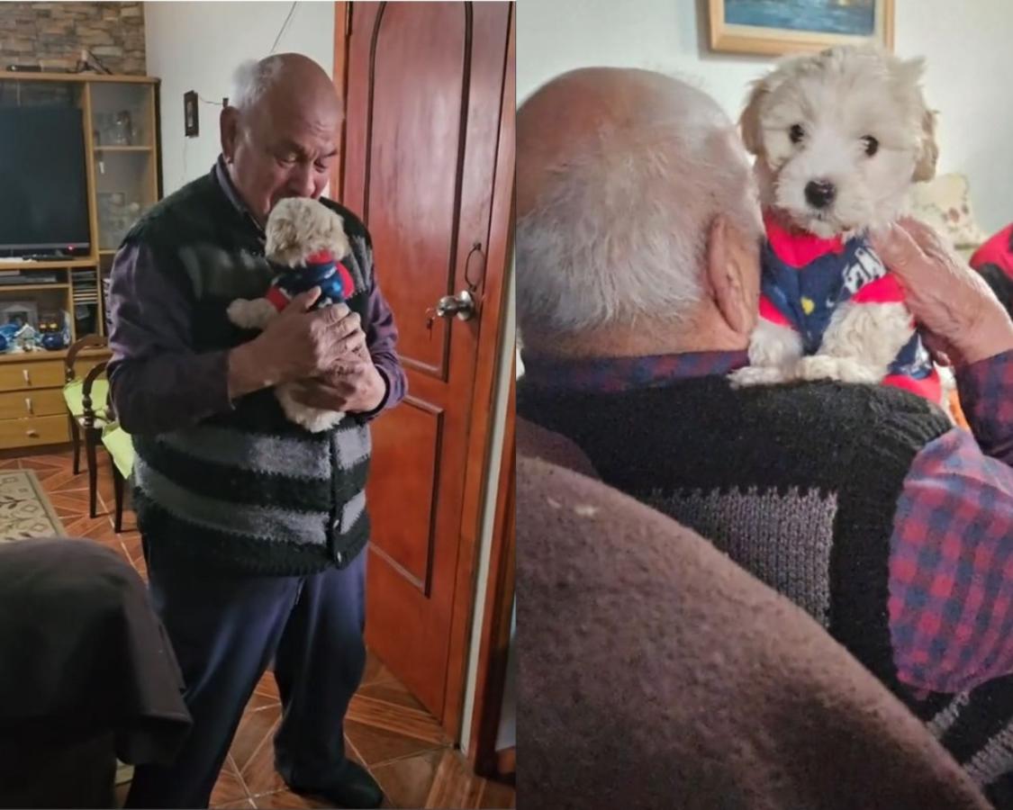 Tierna reacción de adulto mayor de 96 años cuando le regalan un cachorro