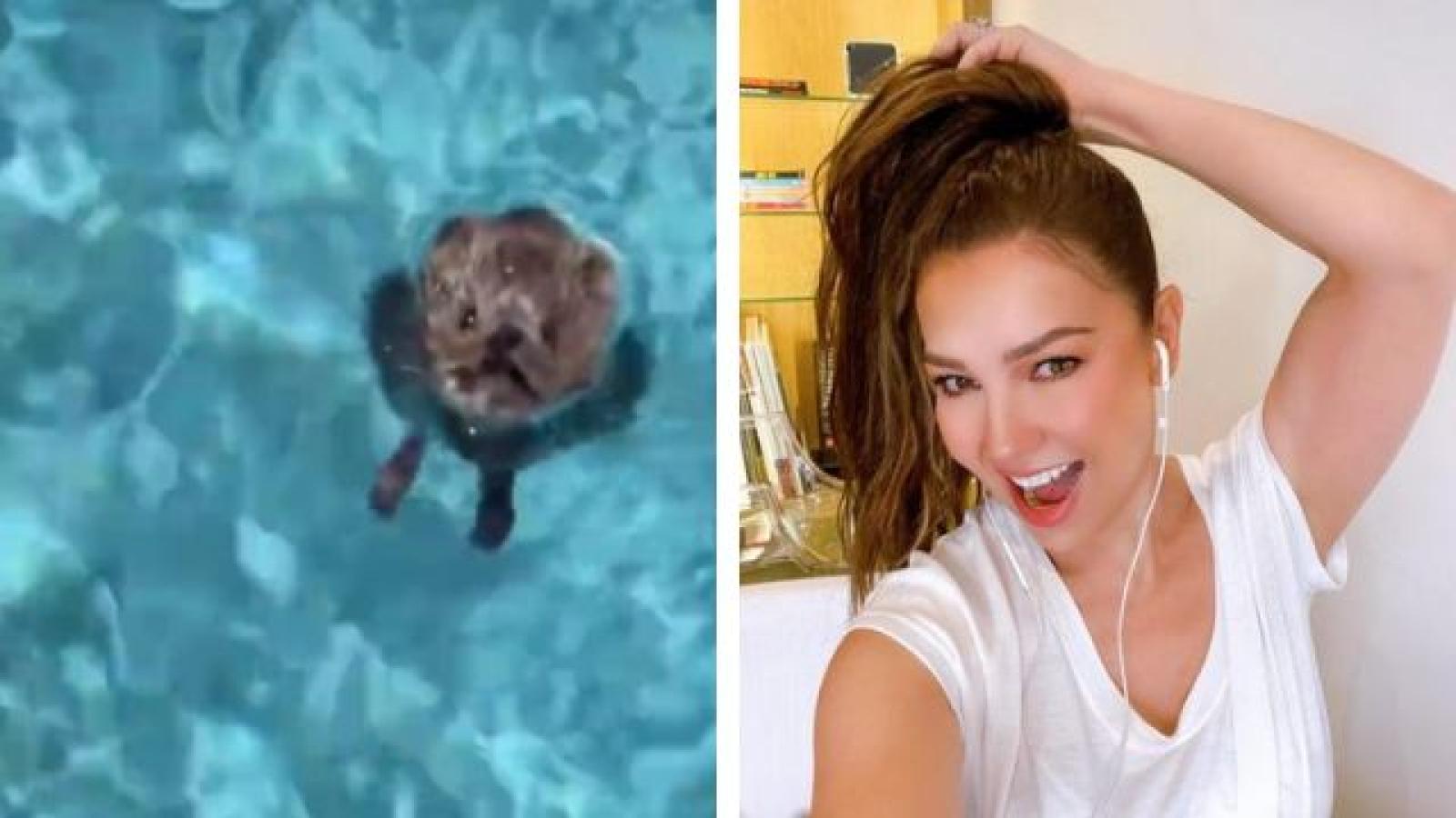 ¡Toda una superheroína! Thalía causa furor tras salvar a un ratón de ahogarse en su piscina