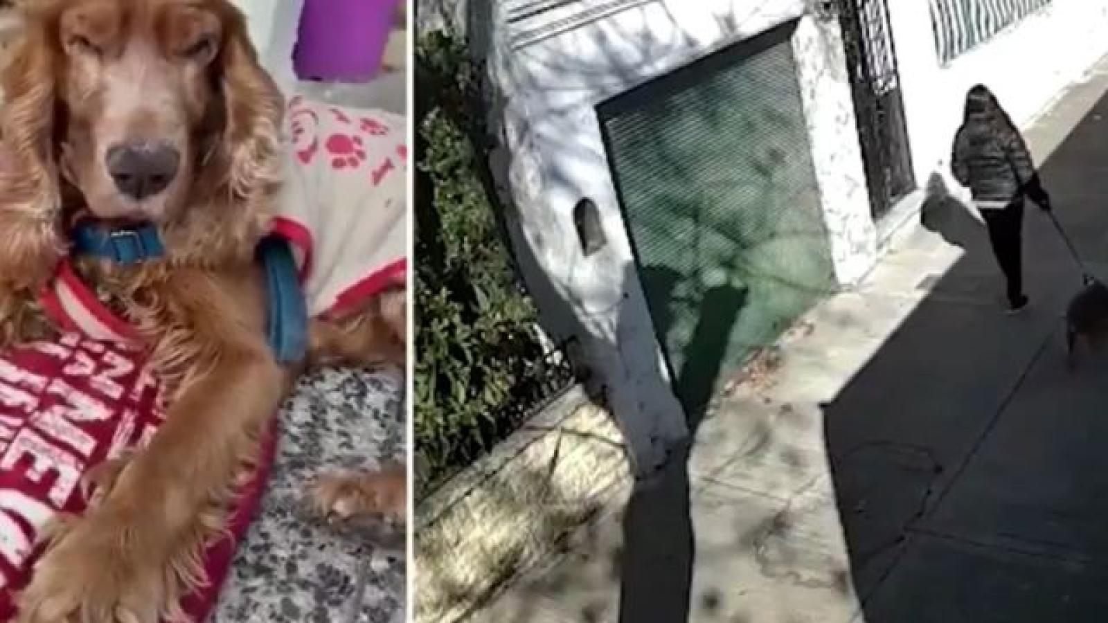 Todo quedó registrado por una cámara de vigilancia, donde se ve claramente como la dueña del perrito, quien por cierto tiene 14 años y está ciego, en el jardín de una casa.