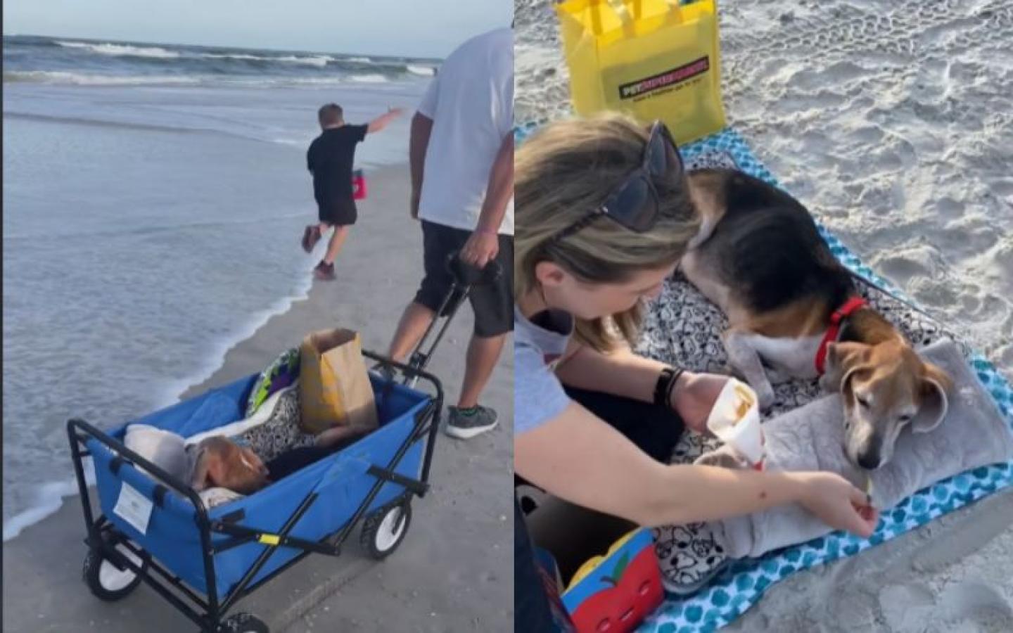 "Tu último día en la Tierra": Familia le organizó a su perrito un último paseo a la playa