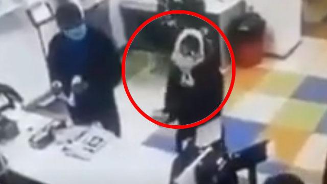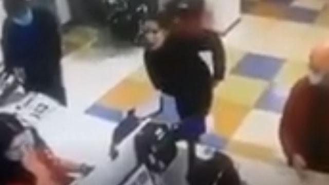 La escena, registrada por las cámaras de seguridad del recinto, muestra como una trabajadora del lugar le exige a la cliente que se coloque la mascarilla –cuyo uso es obligatorio en dicho país-, pues de lo contrario no iba a ser atendida.