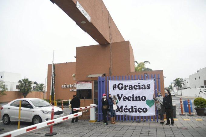 El grupo de vecinos se convirtió en viral por la manera en que decidieron agradecer al personal de salud que atiende a las personas que sufren de la enfermedad que ha paralizado al mundo. “Gracias vecino médico”, expresa el letrero gigante que instalaron estas personas en las afueras del lugar.