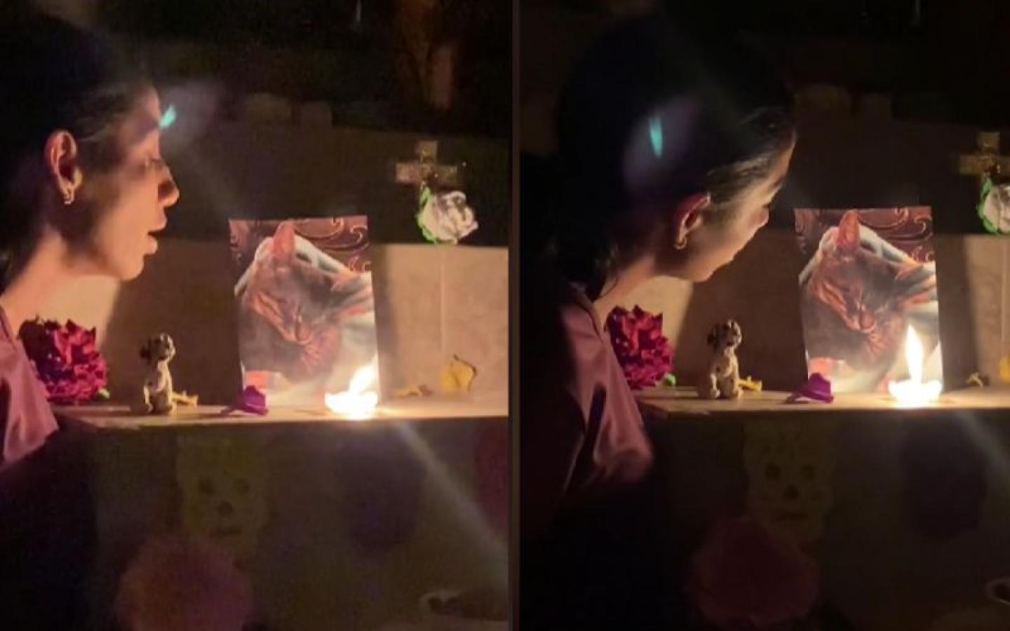 Conmoción ha generado un video que muestra el especial momento que vivió una mujer tras hacerle un altar a su gatito fallecido.