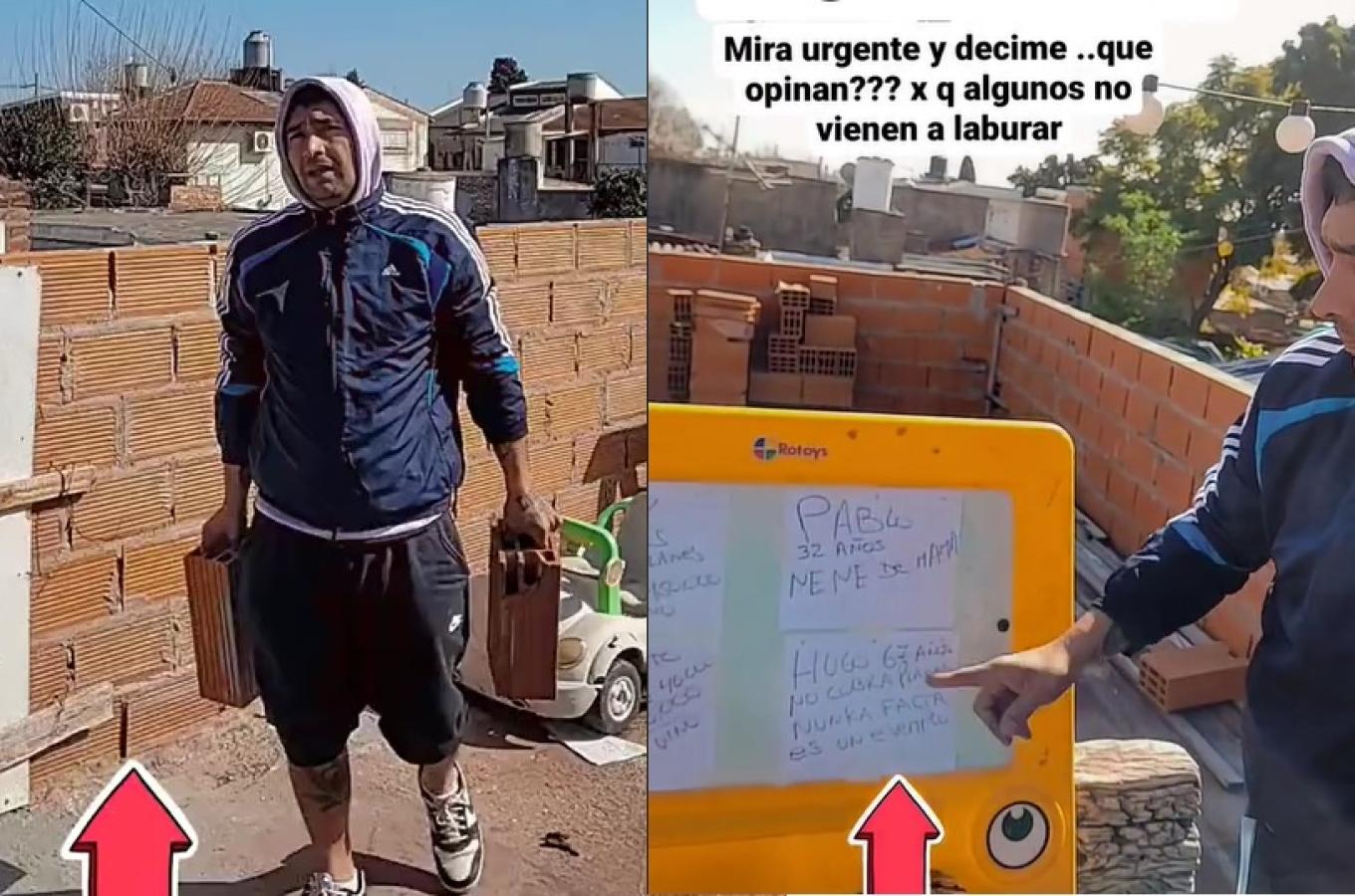 Un albañil argentino "dejó la grande" en TikTok luego de criticar a sus compañeros de trabajo por faltar constantemente y asegurar que solo cobran bonos.