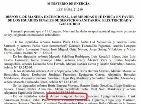 Insólito, pero cierto. Arturo Longton aparece como autor en la Ley de Servicio Básicos. Así fue publicado en el Diario Oficial, donde el ex participante de encierros televisivos como “La Granja” y “1810” aparece como uno de los responsables de la iniciativa que permite posponer el pago de cuentas hasta que pase la emergencia por el coronavirus.