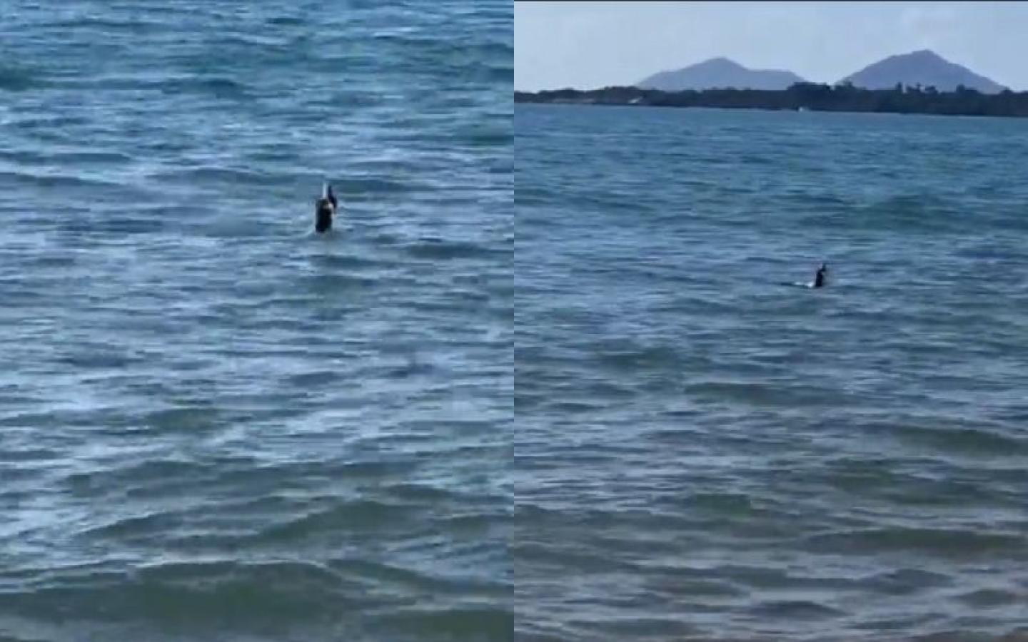 Cabe mencionar que este avistamiento ocurrió durante el mes de octubre, recientemente se viralizó en redes sociales este video que muestra al particuar ave nadando en la costa de Bingil Bay.