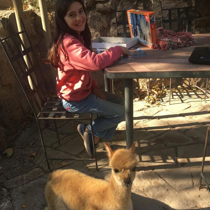 Alfredo Ugarte confesó que su hija menor, Magdalena, de 11 años, se ha convertido en la madre de esta alpaca. “Él la sigue para todos lados. Todos mis otros hijos están un poco celosos porque independiente de que Chaleco juegue con ellos, les chupetee y se deje hacer cariño, ve a la Magdalena y parte donde ella. Sin ella, se pone un poco nervioso”, dijo.